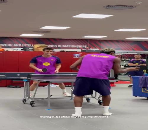 技高一筹!亚马尔晒与科亨打乒乓球视频,配文调侃:我的儿子